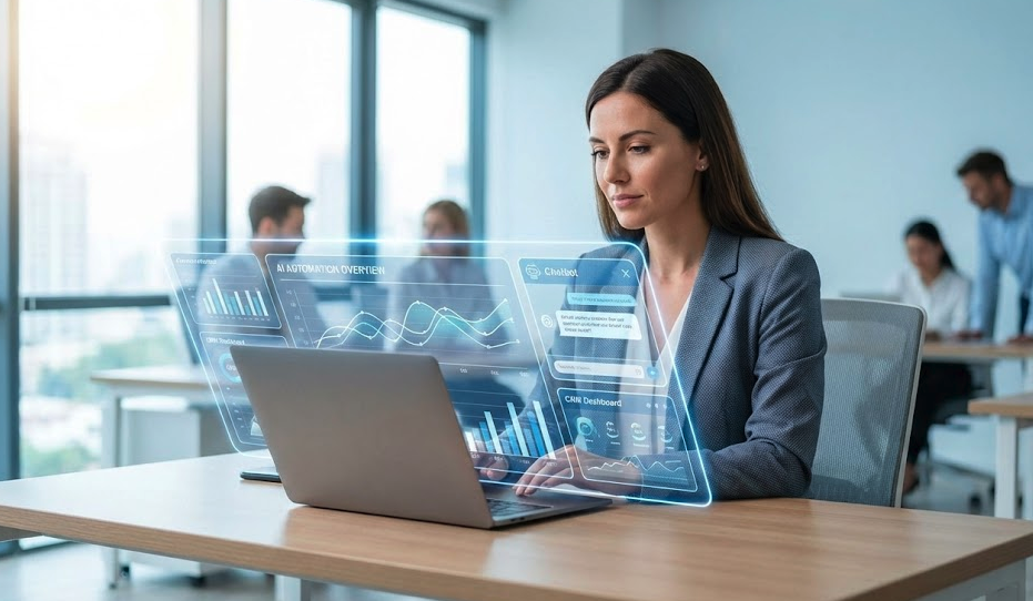 Automação com Inteligência Artificial para atendimento, vendas e processos digitais, integrando site, WhatsApp e CRM.
